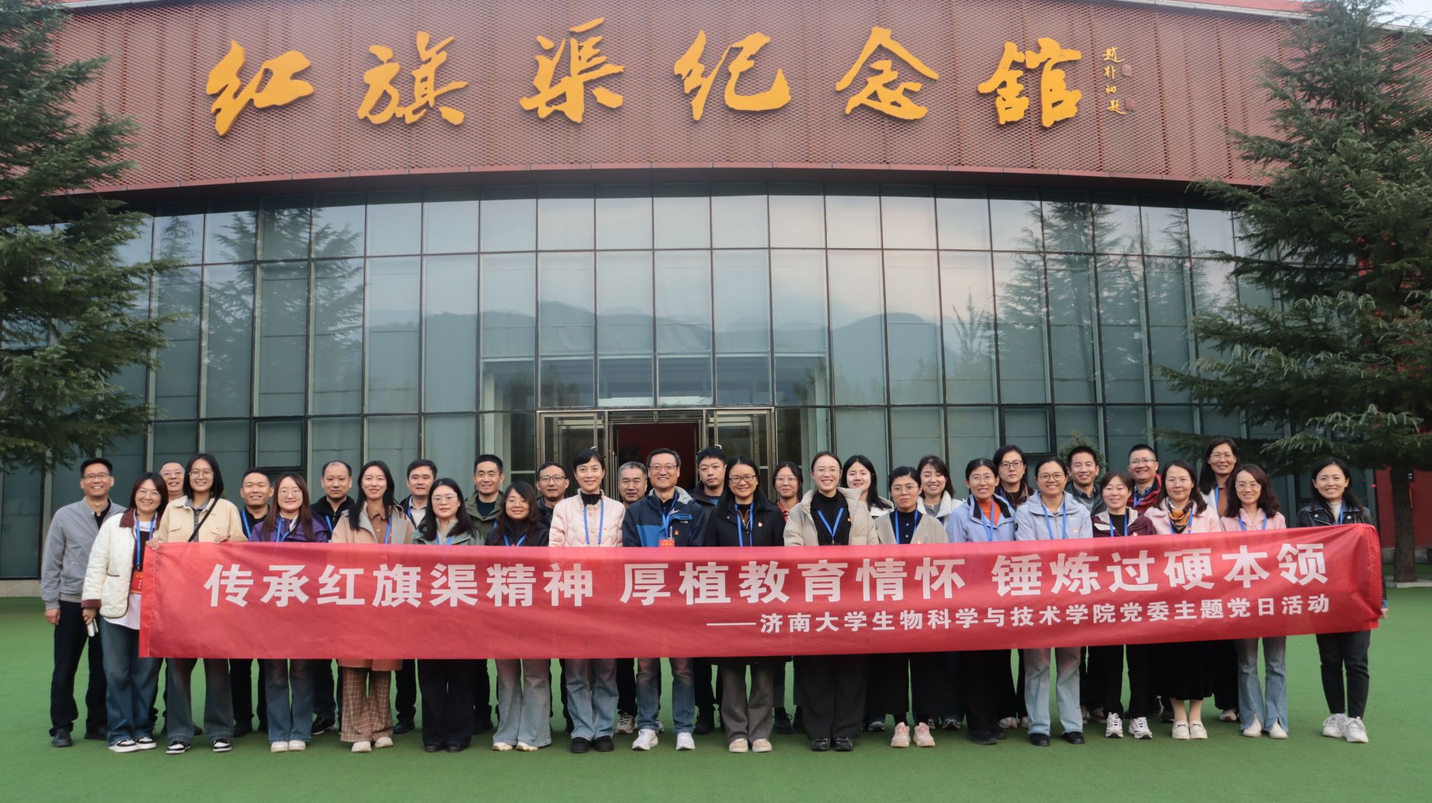 为深入学习贯彻习近平新时代中国特色社会主义思想,传承红色基因,锤炼党性修养,10月25日,beat365中文官方网站党委组织教职工党员,由学院党委书记史国普、院长秦晓春带队,赴红旗渠开展“赓续红旗渠血脉,砥砺奋进担使命”党性学习教育活动。