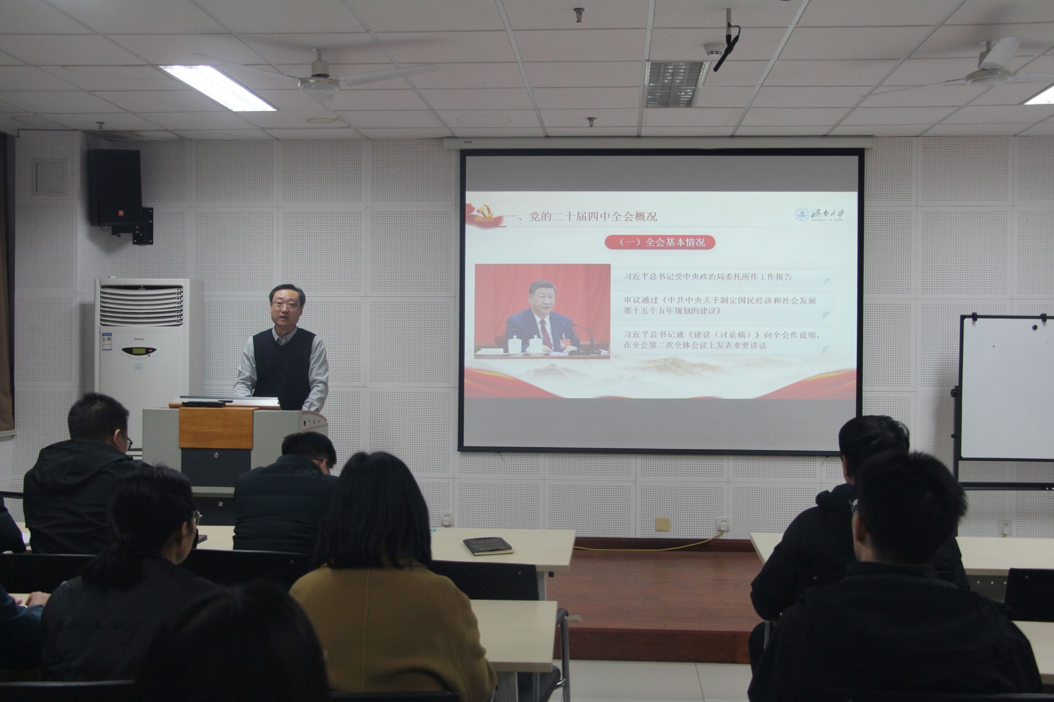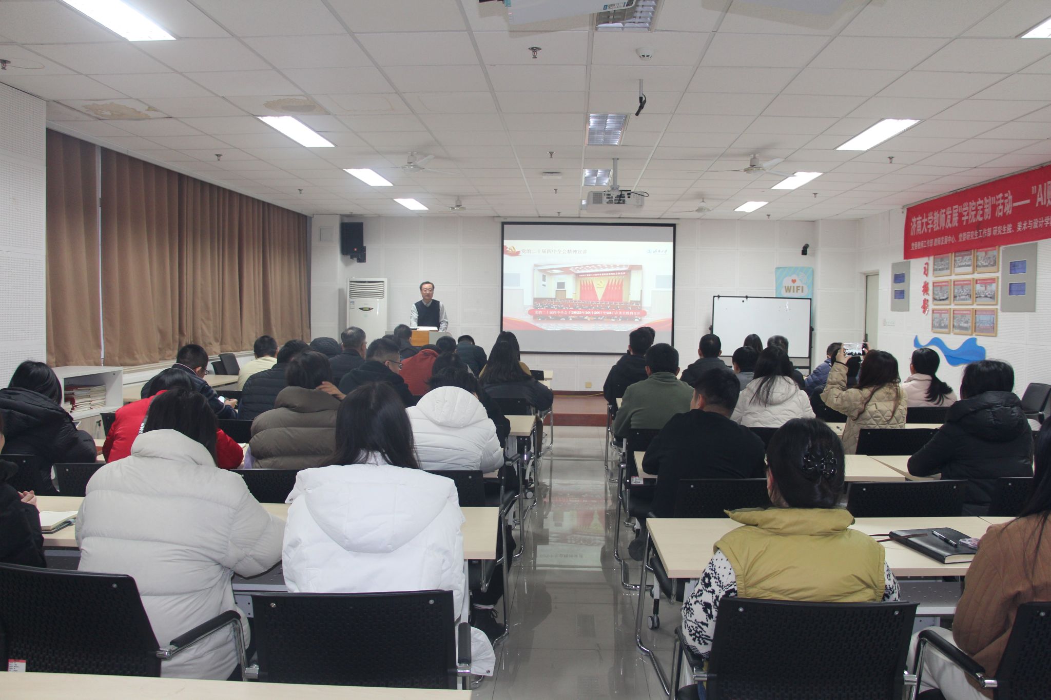 12月18日上午,学院在特教楼B106教室召开全体教工党员大会,学院党委书记史国普为全体教工党员作党的二十届四中全会精神宣讲报告。
