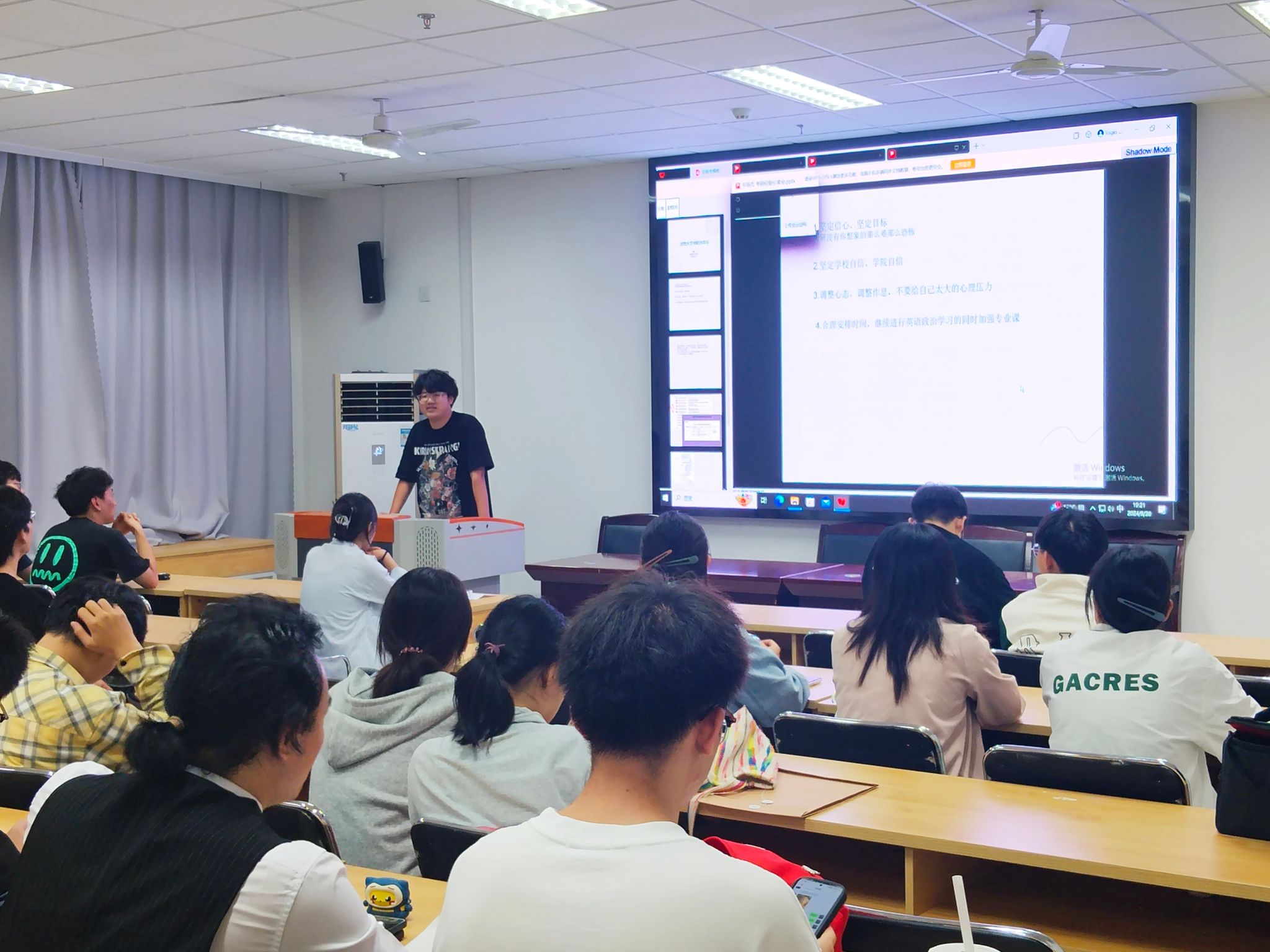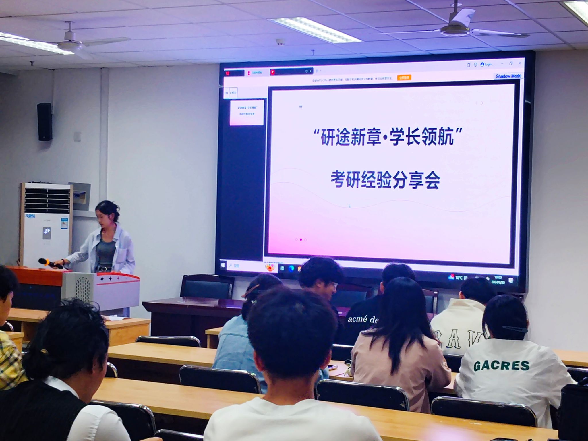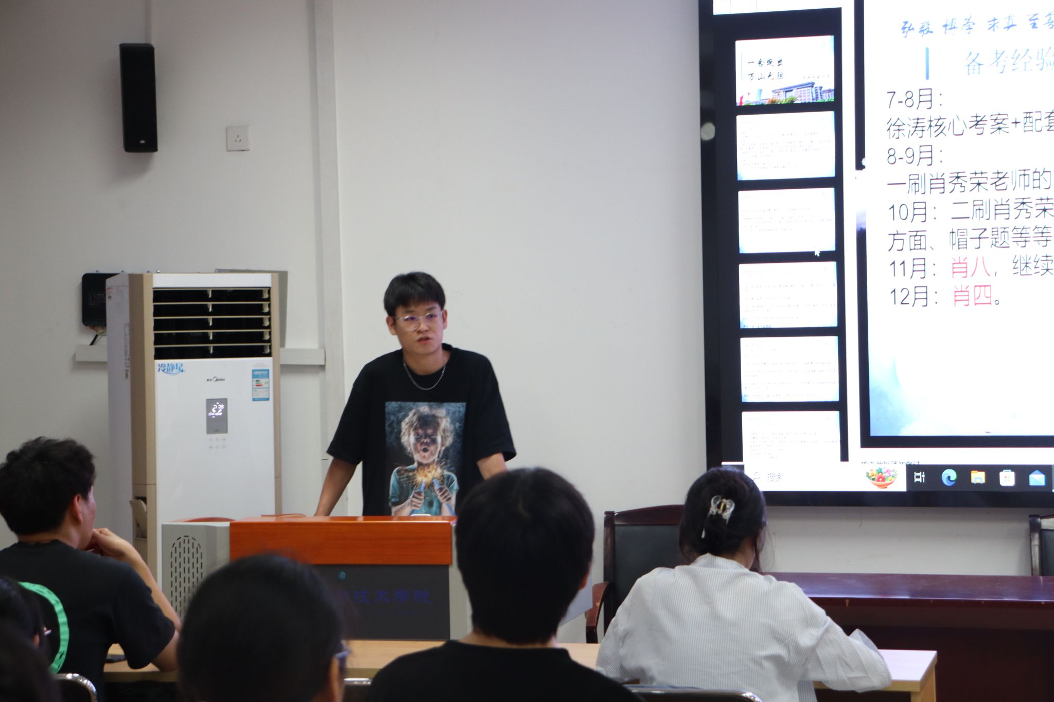 分享会现场座无虚席,与会学生热情高涨。学院研究生姜平以自身经历为切入点,从各个学科的不同学习方法向我们进行介绍。他表示,考研不仅是一场知识的较量,更是一场心态的考验。他鼓励大家要保持良好的心态,勇敢面对备考中的困难与挑战。