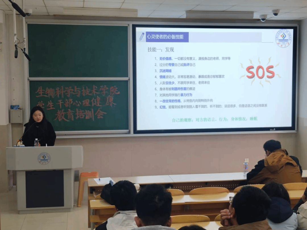 随后,心理指导中心朱晓琳老师从心理健康的概念、学生干部的角色定位与职责以及心理危机的识别与应对策略等方面展开讨论,使学生干部对大学生心理健康基本知识有了更全面的了解,有效促进心理健康教育工作素质和能力进一步提升。