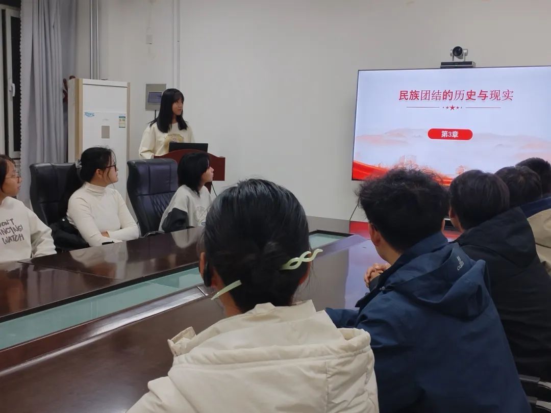 为了让同学们深入了解中华文化的多元性与丰富性,增强中华民族共同体意识,营造团结和谐的学院氛围,beat365中文官方网站近期成功举办了“石榴籽一家亲,共筑民族团结情”主题活动,本次主题活动是学院第三届"青马工程"大学生骨干培训暨主题团课之一。活动由团务部副部长张锦泽担任主讲。
