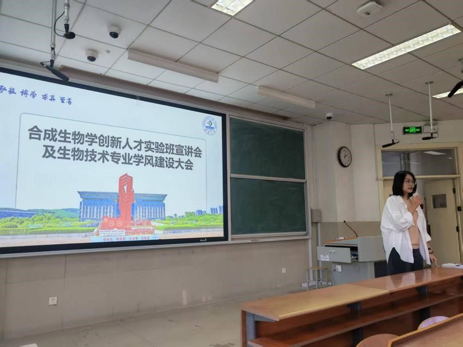 为进一步加强学风建设,推动拔尖创新人才培养,激发学生科研热情,4月28日,beat365中文官方网站举办合成生物学创新人才实验班(以下简称“创新班”)宣讲会暨生物技术专业学风建设大会。学院教工第二党支部成员、生物技术专业相关负责教师,2024级全体学生参加活动。活动由2024级本科生辅导员冯昕主持。