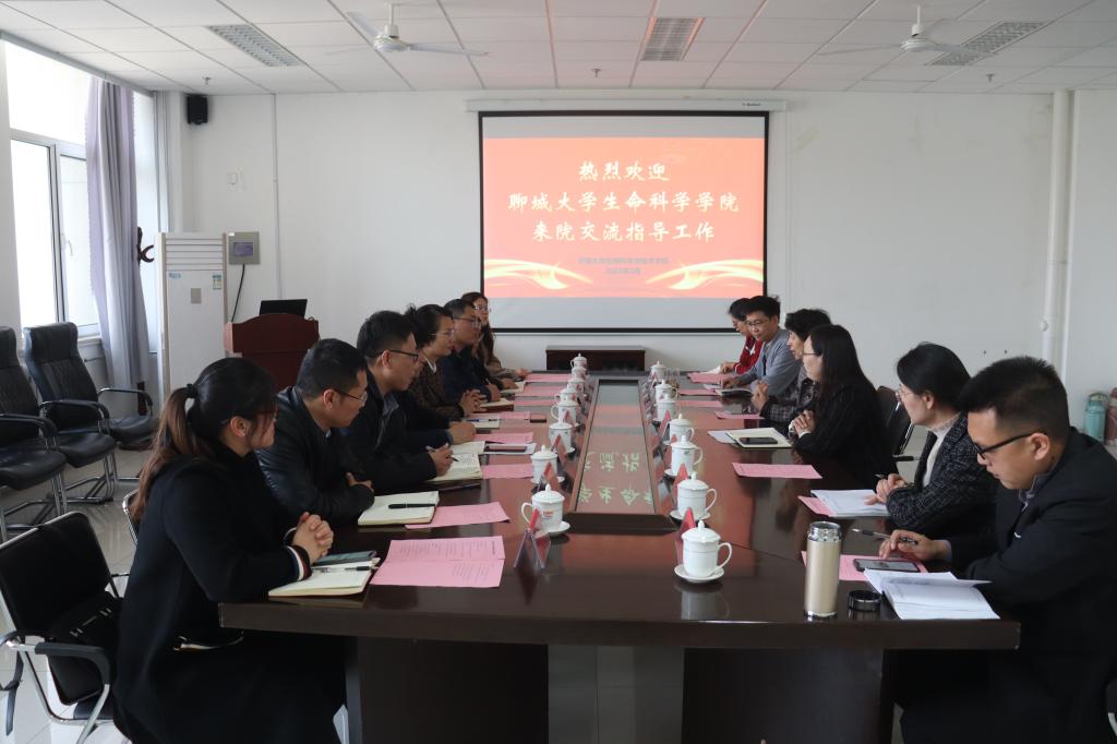 3月29日,聊城大学生命科学学院党委副书记、副院长李晓鹏一行8人来beat365中文官方网站开展调研交流活动。学院班子成员、教师代表、学生工作人员参加座谈交流。会议由学院党委副书记、副院长武芳主持。