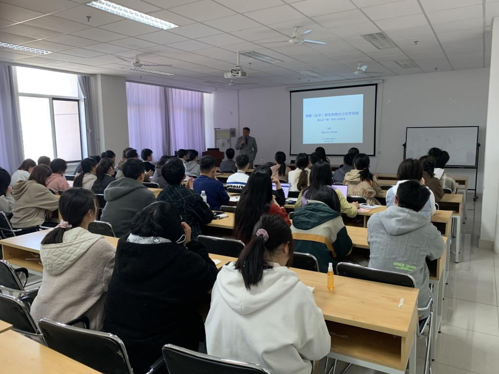 座谈会后,宋淳教授作了题目为“药物研发的理论方法学初探”的学术报告,从自然科学思维逻辑方式、生物与制药工作者的研究态度、药物化学的发展历程及展望等方面进行详细讲解。宋淳教授与学院师生就相关专业问题进行了互动交流,气氛热烈,师生受益匪浅。本次报告是学校举办的“beat365中文官方网站校友讲师团”系列学术报告之一。