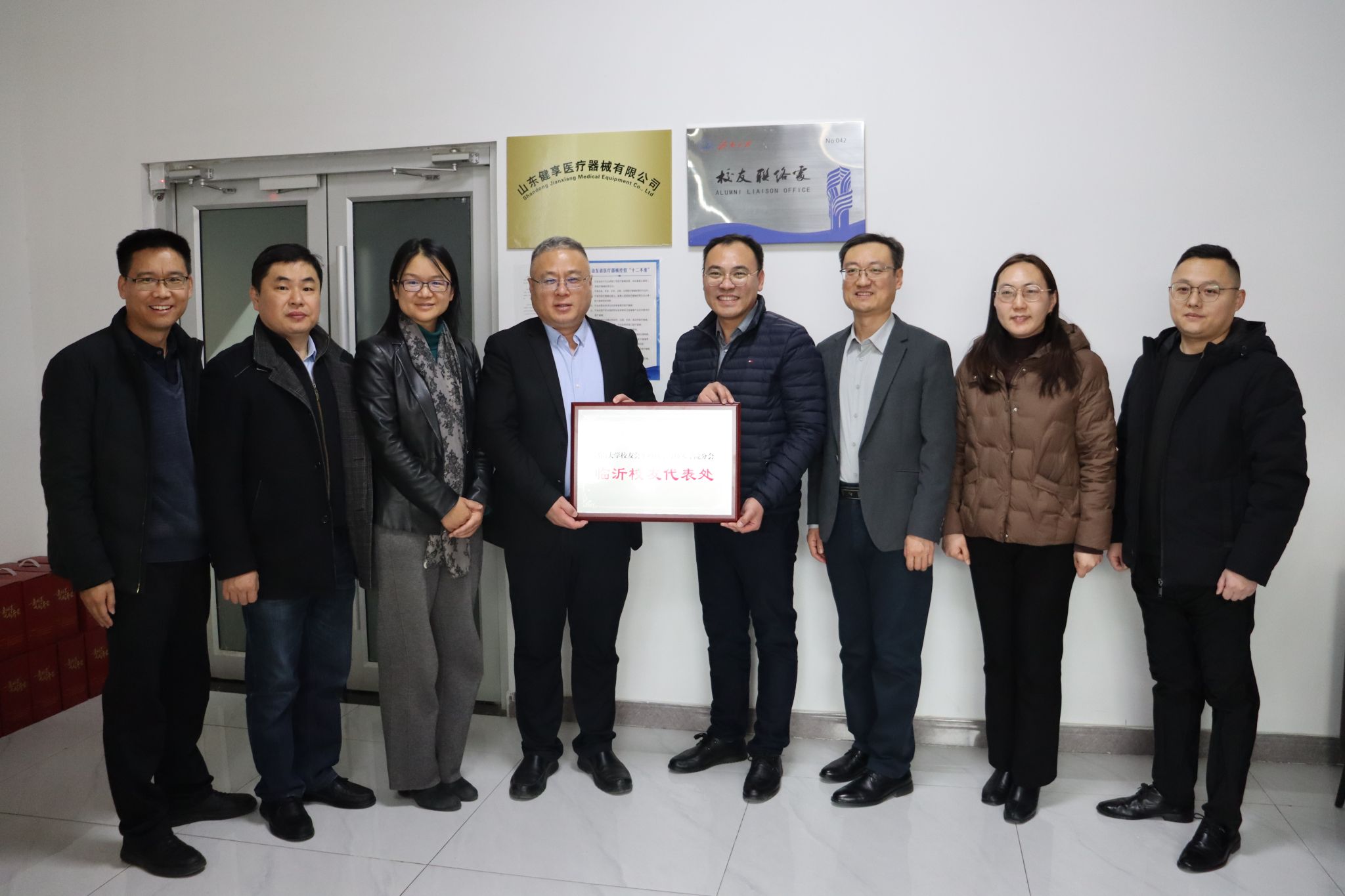 1月14日,beat365中文官方网站校友会beat365中文官方网站分会临沂校友代表处在山东健享医疗器械有限公司成立。学校党委常委、副校长黄加栋出席活动,beat365中文官方网站临沂校友会会长李子燕、beat365中文官方网站临沂校友会秘书长、beat365中文官方网站校友会beat365中文官方网站分会副会长2012届校友李衡、学院班子成员、教师代表、临沂校友代表参加活动。