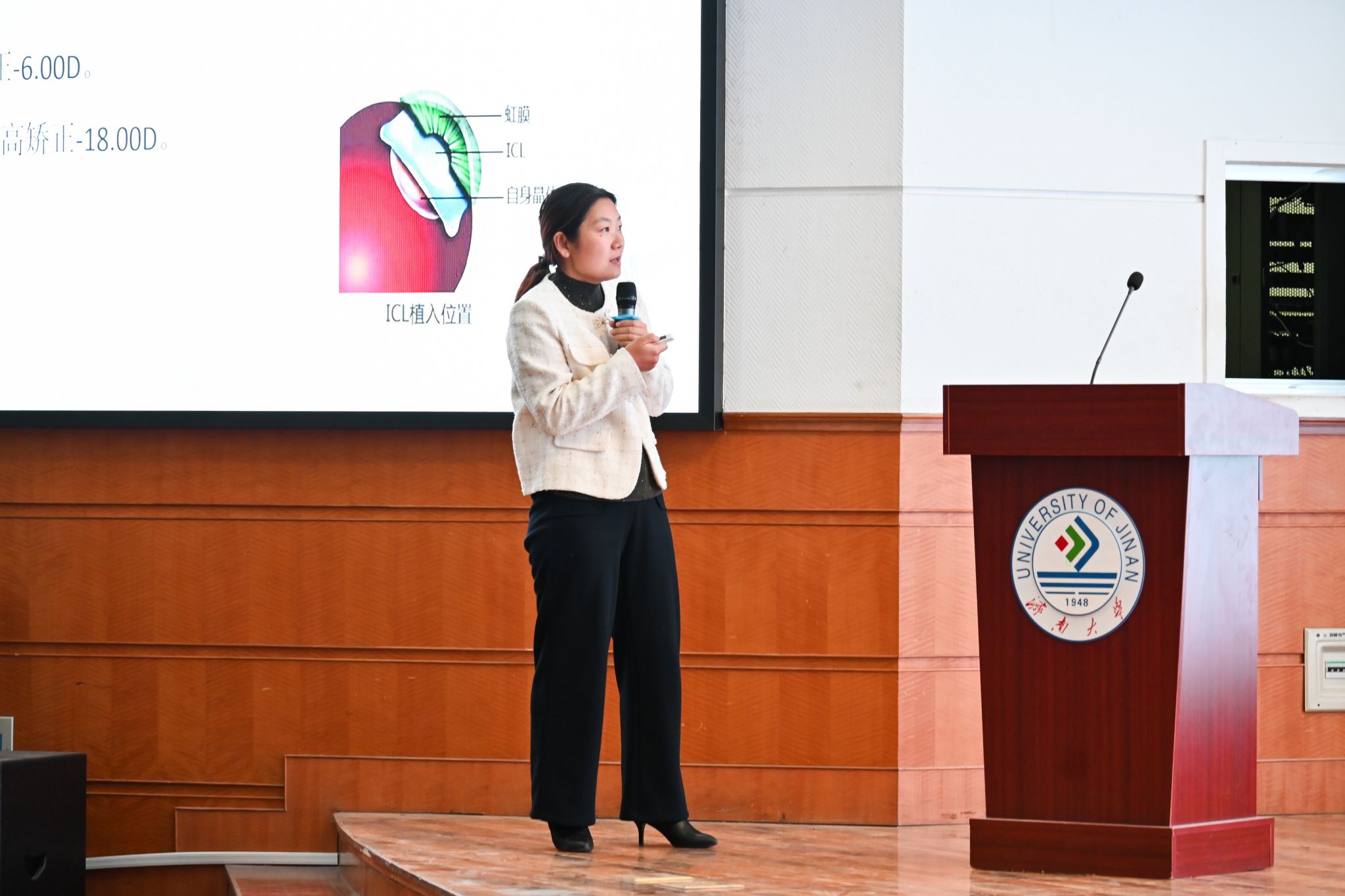 李龙介绍了山东省第二人民医院及其博士志愿服务团基本情况。医院博士志愿服务团成员,皮肤科主任张璇、脊柱外科主任惠文鹏、眼科副主任刘卫卫结合临床医学经验,以通俗易懂的语言、生动有趣的案例,分别为学生讲解了常见皮肤病、腰间盘突出症、近视、干眼症等疾病相关症状以及预防与治疗方法,同时,还对大学生健康生活方式提出了实用型建议。
