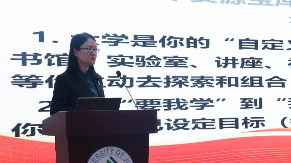 学院教师代表李慧结合个人成长和科研奋斗历程,向新生提出三点建议:用"科研思维"经营人生,把"逆境"当作磨刀石,让"责任"照见初心。她用玉米育种中的术语作比喻鼓励新生:大学就像一粒种子的萌发期,基因的表达需要环境信号的激发。愿同学们以求知若渴的赤诚为“光照”,以直面挑战的勇气为“水分”,在这片土地上生长出独一无二的人生图谱。