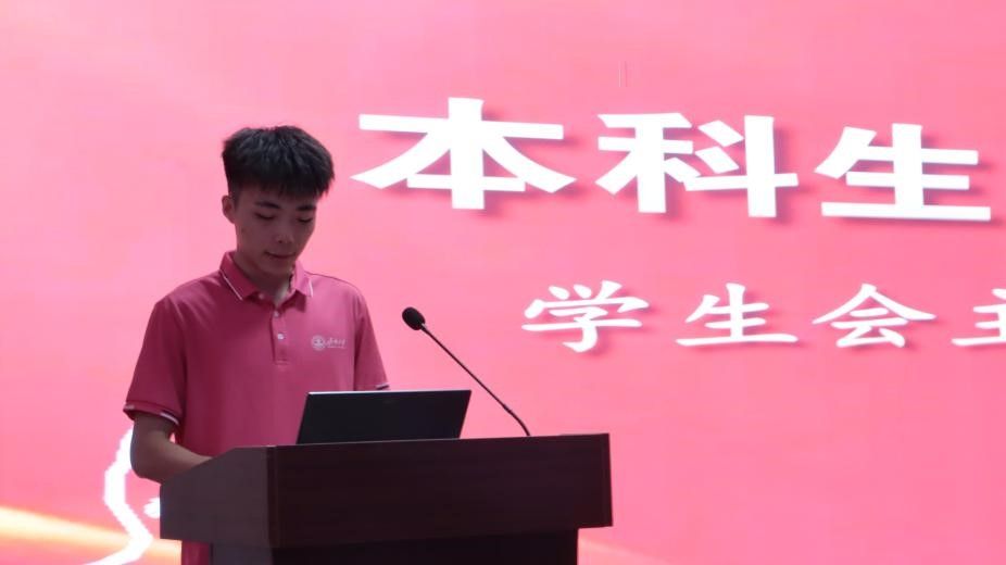 学院学生会主席生物2302班丁宝鹏作为在校生代表发言,他结合自身经历,分享了个人大学生活的感悟,与新生共勉:一要心系家国,共绘蓝图,于奋斗中领悟自我的无限可能;二要砥砺前行,无惧风雨,于挑战之巅铸就自我价值的光辉;三要宽容如海,助人自助,于奉献的旅程中探索生命的意义。