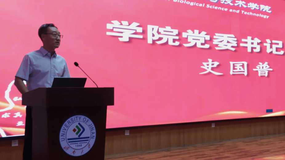 学院党委书记史国普代表学院向全体新生表示热烈欢迎,并介绍了学院发展近况与成就。史国普向新生提出三点期望:一是胸怀家国、志存高远,融入民族复兴伟业;二是脚踏实地、博学笃行,筑牢个人成长根基;三是与时俱进、善于创新,拥抱时代变革浪潮。他勉励同学们发扬“艰苦奋斗、凝心聚力、追求卓越”的济大精神,坚定理想信念、练就过硬本领,让青春之光在强国建设的征程中熠熠生辉。